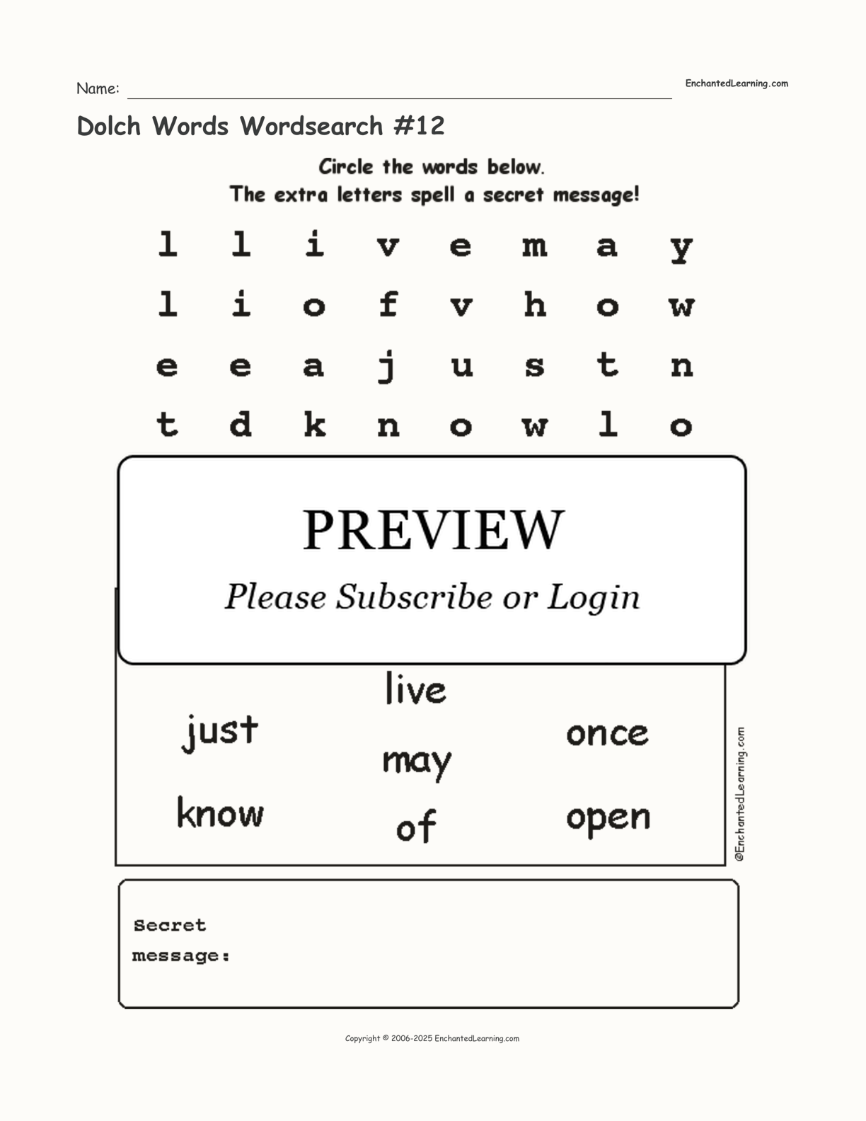 Find all the words in the wordsearch puzzle, then use the extra letters to read a secret message: “Live And Let Live”. This is a printout for young students.