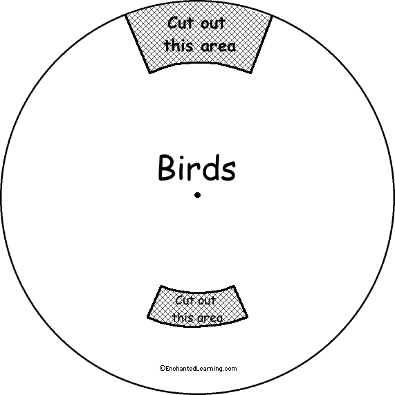 Bird Word Wheel This 2-page print-out makes a bird word wheel; it consists of a base page together with a wheel that spins around. The pages are attached using a metal brad. When you spin the wheel, bird words appear, including: penguin, eagle, ostrich, penguin, flamingo, robin, crow, and pelican. The student then writes down bird words. |